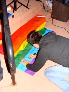 Dallas, TX – A large crowd of vigil keepers gathered at the Crossroads in Dallas on Sunday night to remember murdered gay teens, Jorge Steven López Mercado of Caguas, Puerto Rico, and Jason Mattison, Jr. of Baltimore, Maryland. A third gay teen, Jayron Martin, who survived a vicious homophobic attack in Houston, was also remembered. A coalition of organizations led by Bob McCranie of the Carrolton Project and Daniel Cates of Equality March Texas met at the corner of Cedar Springs and Throckmorton, the historic center of LGBT life in Dallas to voice anger, to express their sadness in solidarity with the families and friends of the slain teens, and to send messages of hope and support from Texas to the loved ones of the boys who were attacked for no other reason than their sexual orientation. Other sponsoring organizations were Cathedral of Hope United Church of Christ, the largest LGBT-predominant congregation in the world, Syangogue Beth El Binah, Resource Center Dallas, the Dallas Chapter of the Gay, Lesbian & Straight Education Network (GLSEN), and the Lambda Weekly. Speakers urged the gathering to turn their anger and sorrow into meaningful action for a just world, not only for LGBT people, but for everyone. As vigil keepers lit their candles, the names of 100 slain Transgender, Lesbian, Gay, and Bisexual victims of hate crime murder were spoken aloud in the night. The march wound several blocks down to the Legacy of Love monument at the corner of Cedar Springs and Oak Lawn, and then returned. Rainbow flags were signed by many of the participants with messages of hope and support for Jorge Steven’s family in Puerto Rico, and for Jason’s family in Baltimore. A giant card was signed for Jayron, to let him know of the support he has from the Dallas-Fort Worth LGBT community.