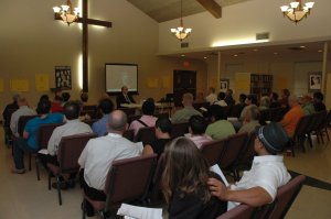 Dr. Sprinkle speaks to a full house at Resurrection MCC Houston on "Unfinished Lives" book