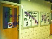 Raleigh, North Carolina – A perp with an anti-gay agenda vandalized the North Carolina State University GLBT Center on Monday. Though the university was quick to obscure the slurs spray painted on the outer door and display case of the center, the campus newspaper, The Technician, got a good photograph of the message the hate tagger sent to LGBTQ staff and students at State. The words “Fags Burn” and “Die,” along with a broad slash across a wall display were sprayed in purple paint across the whole front of the center, which is in Harrelson Hall on the main campus. Campus Police Sergeant Jeff Sutton told The Technician that the hate act took place between 8:30 pm and 9:30 pm, when the vandalism was discovered. Adam Ward, a graduate advisor for the GLBT Center, and a graduate student at State in comparative biomedical science, wrote on a Facebook post, “No one was able to see who sprayed-painted this, but believe me, there will be a University response. We will continue working with University Police, and I thank all of our community members and allies for standing up for equality and what’s right.” On her Facebook page, Center Director Justine Hollingshead posted this assurance to the LGBTQ community on the State campus: “We are working on some positive follow up and of course education. Just wanted to keep folks in the loop. Thanks for all of the messages of support.” Hollingshead was employed to lead the GLBT Center in 2008, and has built it into a vital player in forming campus opinion about diversity and inclusiveness issues.