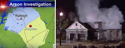 Clayton, NC – A gay couple anonymously hiding in a motel out of fear for their safety, were burned out of house and home on Friday. Neighbors say the gay men suffered at least three deliberate acts of anti-gay harassment for over a year – but the neighbors are too scared to identify themselves, either. So Johnston County law enforcement, working from a state arson statute that doesn’t allow for violence against gay men as a hate crime, have determined that the burnout was “just arson.” Like 9/11 was “just some plane crashes.” Or like the murder of Ugandan gay activist David Kato was “just a robbery gone bad.” North Carolina has not seen fit to include sexual orientation, gender identity, or gender expression as protected classes in its existing hate crimes laws. So, an act of blatant hate crime terror that holds a gay couple and their whole neighborhood in fear is playing with matches. That is all this deed will remain officially unless the U.S. Justice Department invokes the Matthew Shepard Act to rectify neglectful conduct by the Johnston County Sheriff’s Department. WRAL.com interviewed a frightened, anonymous neighbor, who is sure that the three incidents of harassment were related to anti-gay hatred: “A note with derogatory language was left in the mailbox, an anti-gay slur was written on the house with marker, and the tires of a car parked in the garage were slashed.” The gay men’s friend and neighbor continued, “I felt sick to my stomach. I felt so sorry for the two gentlemen. They lost everything. We do believe that this is a hate crime.” The couple was out of town when other residents in the Winston Pointe subdivision discovered the fire belching from the brick veneer home at 1:30 a.m. Friday and called the alarm in. Flames quickly engulfed the structure, gutting it and destroying all the couple’s possessions. The American Red Cross has stepped in to offer food, clothing, and insurance contacts to the victims. Johnston County Sheriff Steve Bizzell says that the investigation has turned up no suspects yet. Bizzell acknowledged that he knew of two out of the three incidents of harassment against the gay men this past year, but he would not say which two.