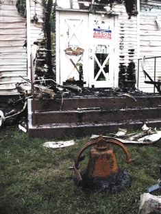 Ruins of South Bloomingville Christian Church. Was the arson a hate crime against a gay-friendly church?