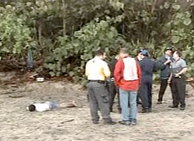 Police view the corpse of murdered gay Puerto Rican, Ezequiel Crespo Hernández, in April 2011 (EDGE photo).