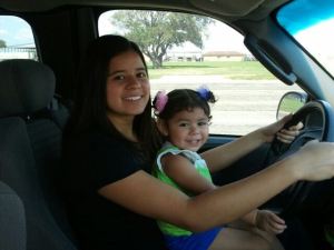 Mary “Kristene” Chapa behind the wheel of her car. Released after three weeks in intensive care since a possible hate crime shooting, she assisted police in sketching the likeness of the man who attacked her and killed her lover [NBC Latino photo courtesy of Hilario Chapa].