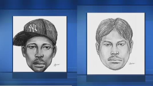 Police sketches of Brooklyn subway gay basher (l) and Queens suspect (r) who attacked a woman while shouting anti-gay slurs.