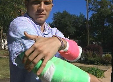 The Dallas Voice broke the story with graphic photos of Burnett’s injuries embedded in the article, and the story took hold in national mainstream media. Burnett has been interview around the nation, as horror and interest increased in the story. Burnett told the Dallas Voice he is pleased with the course of the investigation, the arrests, and now with the efforts of the Lamar County District Attorney. WFAA Television reported Burnett came out when he was 15, and learned of the hate crime murder of Matthew Shepard, the University of Wyoming student slain in Laramie in 1998. “Matthew Shepard is one of the reasons I came out of the closet,” Burnett told WFAA. “I’m so glad my fate did not end up like his.” He has no doubt about why he was targeted for violence, since the trio knew his was gay. As he sat in a chair at a private Halloween party in Reno, a small town near Paris, Texas, the men attacked him from behind. Burnett said, “I ended up getting stabbed, burned and beaten pretty badly and I’m convinced they were trying to kill me.”